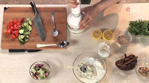 Кнели из киноа с ржаным йогуртом и салатом
