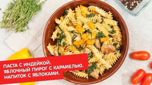 Паста с индейкой. Яблочный пирог с карамелью. Напиток с яблоками | Ужин? Не проблема!