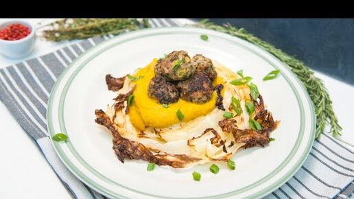 Капустный стейк с соусом и фрикадельками и овсяное молоко с ягодным пюре | Дежурный по кухне