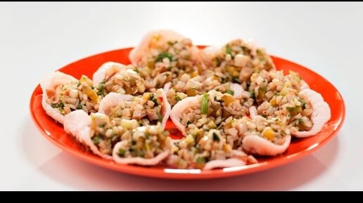 Салат из кальмаров в креветочных чипсах | Кухня по заявкам