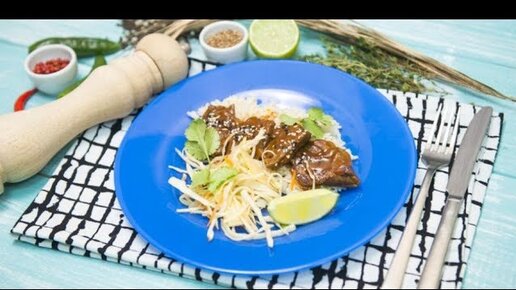Острая говядина с апельсиновым соусом и рисом и овощной салат с азиатским соусом | Дежурный по кухне