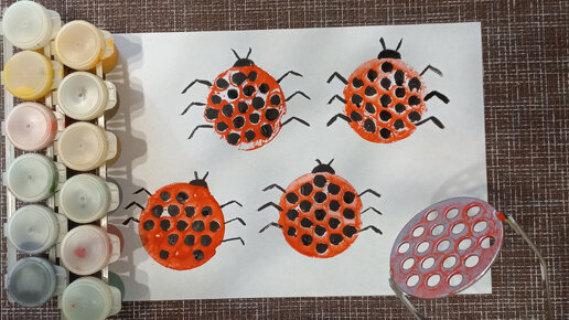Рисуем божьих коровок толкушкой🐞