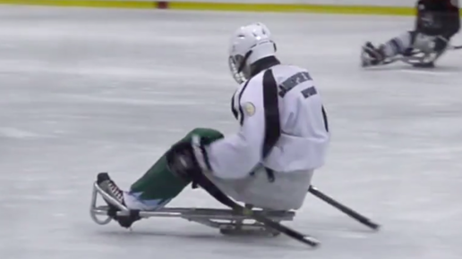 Ребята с ограниченными возможностями играют в хоккей. Они олицетворяют собой мужество и упорство