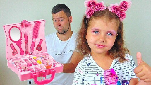 Милана учится пользоваться детской косметикой