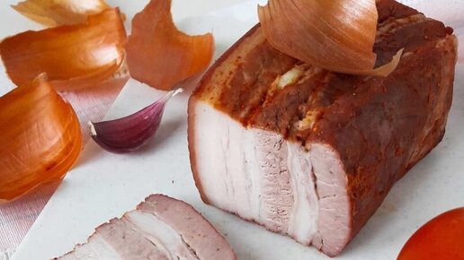 Свиная грудинка по домашнему. В луковой шелухе. Съедают в первый же день.