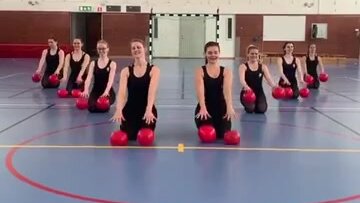 Синхронные спортсменки с мячами