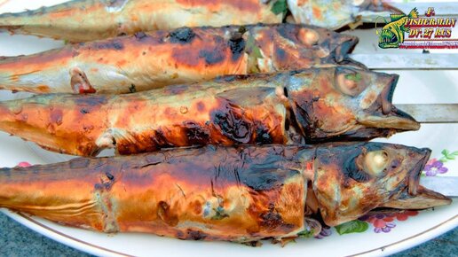 Скумбрия на гриле, фаршированной ананасом и жгучим перцем с зеленью, Вкусный шашлык из рыбы