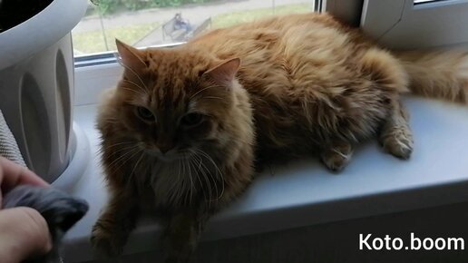 Сибирский рыжий кот прикидывается ленивым, потому, что потом его застала, как он играет и веселится с носками