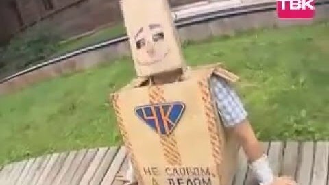 Человек-Коробка дарит зонт Поздееву