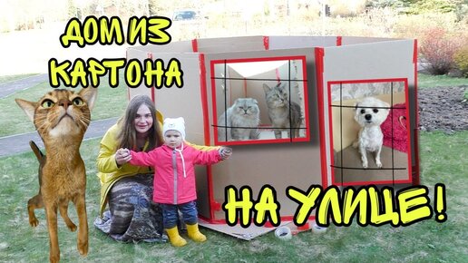 24 часа В КАРТОННОМ ДОМЕ НА УЛИЦЕ с питомцами и малышкой!
