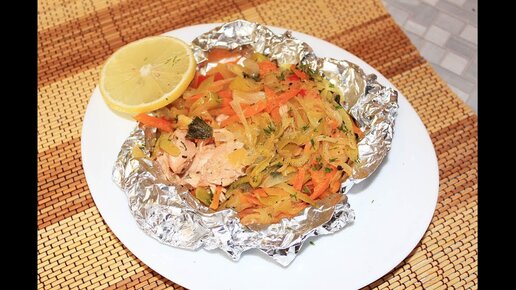 Горбуша с овощами - запекаем порционно в фольге в духовке