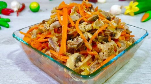 Салат с куриными желудочками подчти по корейскм. Невероятно вкусный и сытный.