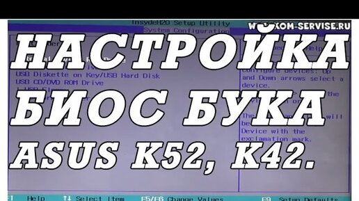 Как зайти и настроить Bios ноутбука Asus K52 K42 для установки Windows 7 или 8 с флешки или диска.