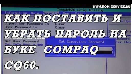 Как поставить и поменять пароль на биосе ноутбука Compaq Cq60 и как зайти в Bios ноутбука.