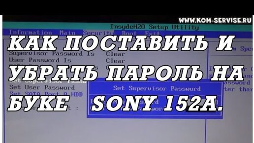 Как поставить и поменять пароль на биосе ноутбука Sony 152a29 и как зайти в Bios ноутбука.