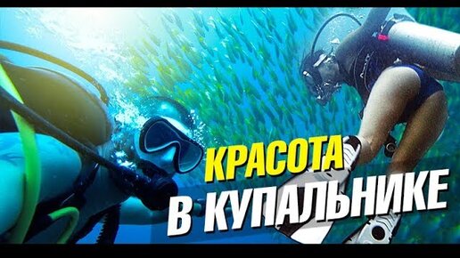 Красавица одна в купальнике под водой и большая стая рыб. Стихия на островах. Лайф влог. Дайвинг