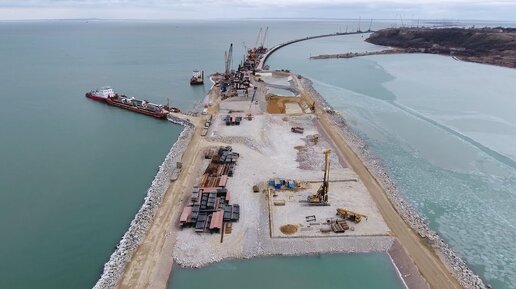 Крымскій мостъ 4к: Обзорный пролётъ надъ стройкой въ Керчи. Часть 2