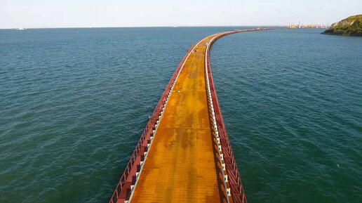 Крымскій мостъ 4k: Стапели и мостъ Рм-3 на бреющемъ полётѣ