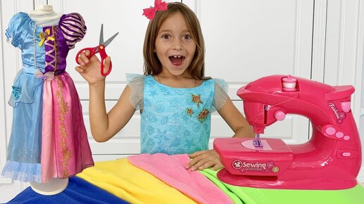 София шьет Новое платье и собирается на Вечеринку Принцесс | Sofia playing with Toy Sewing machine