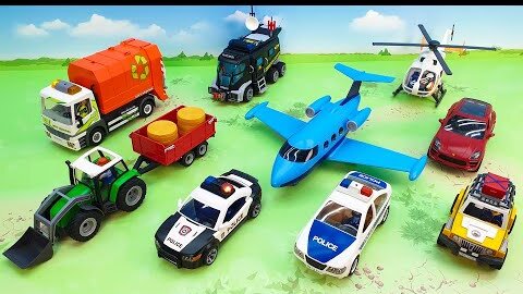 Полицейская машина Мусоровоз Трактор Вертолет скорой помощи. police ambulance tractor Toys Vehicles.
