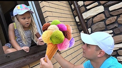 Alice play in playhouse with plastic ice cream