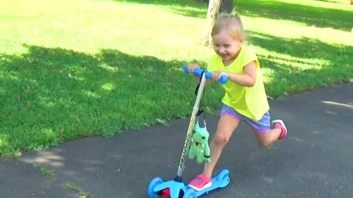 Алиса катается на самокате в Парке Победы Alice rides a scooter in Victory Park