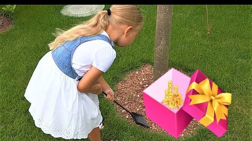 Алиса нашла КЛАД в саду под деревом !!! Игрушки и детские украшения с сюрпризами !