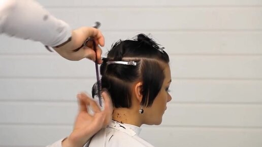 Парикмахер срезал длинные неопрятные волосы девушки и сделал короткую стрижку с удлиненной челкой (модная стрижка 2021)