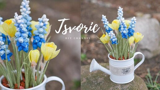 МУСКАРИ из бумаги / Весенняя композиция / Как сохранить цвет бумаги ?! / DIY TSVORIC