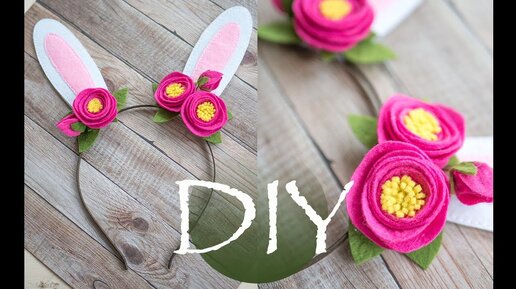 Ободок зайчик с цветами из фетра DIY Tsvoric Rim of a bunny with flowers of felt