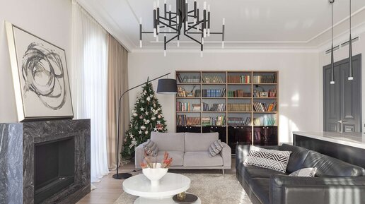 Настоящий мужской интерьер гостиной строгий, уютный и функциональный