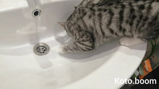 Забавные игры с водой кошки милашки, кошка Ириска познает ванную комнату, добралась до раковины с водой