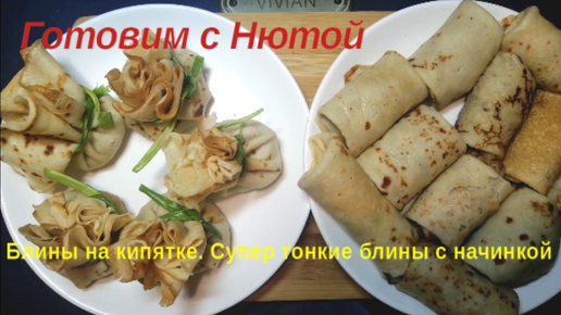 Блины на кипятке .Супер тонкие блины с разной начинкой