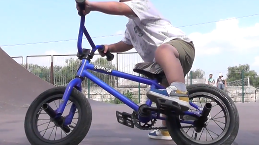 Трёхлетний мальчик профессионально катает на велосипеде и делает трюки