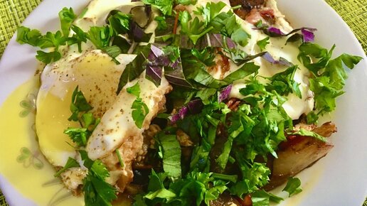 Очень вкусная летняя яичница. Никакого мяса, а муж в восторге.