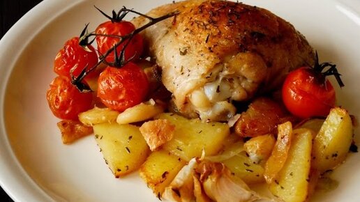 Картошка с курицей в духовке. Курица с картошкой в духовке.