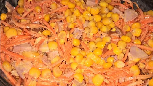 Салат с копченой курицей. Салат за 10 минут. Салат с корейской морковью. Салат с кукурузой.