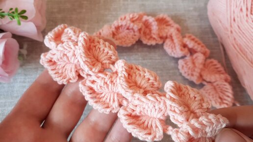 Вяжем ленту или тесьму из объемных листиков крючком!