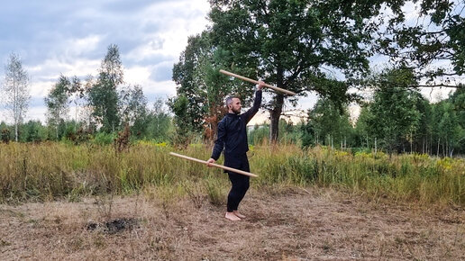 Упражнение с двумя палками "Двойная разнонаправленная восьмёрка в движении"