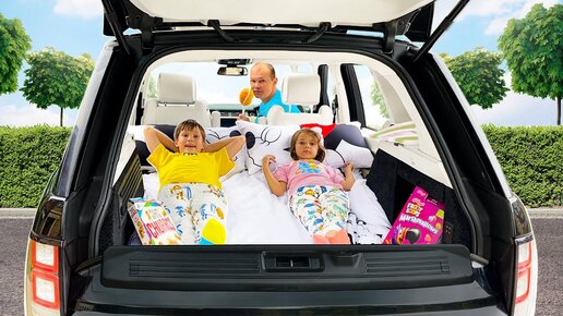 Провели Целый день у папы в машине Макс и Катя