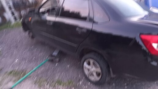 Лада Гранта сложилась на домкрате. Кузов из фольги