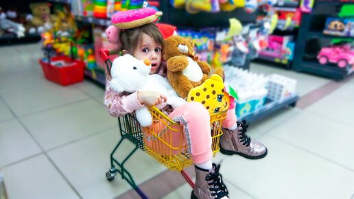 Ева покупает новые игрушки для детей. Toys sale in shop