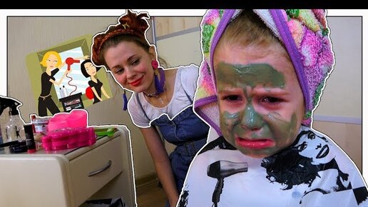 Ева в салоне красоты для детей. Красота страшная сила. Pretend play beauty salon. Princess makeup.