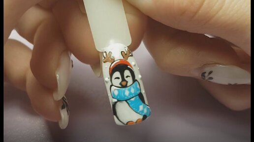 Новогодний дизайн ногтей! Рисуем милого пингвина! Дизайн к 2018г!