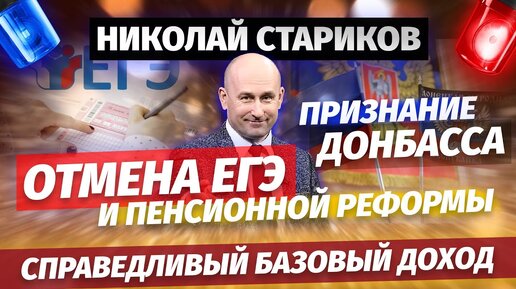 Николай Стариков: отмена пенсионной реформы и ЕГЭ, Справедливый Базовый Доход, признание Донбасса