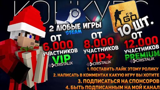 Конкурс НА 10 Cs:go + 2 Любые Игры Стим + Бонусы