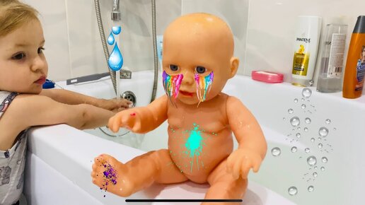 Катя разрисовала куклу Беби Бон и купает ее в ванне! Веселое видео для детей!