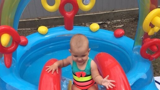 Надуваем новый детский бассейн с горкой и катаемся вместе!