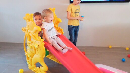 Развлечения для детей! Детская игровая комната с горкой в квартире. Видео для малышей