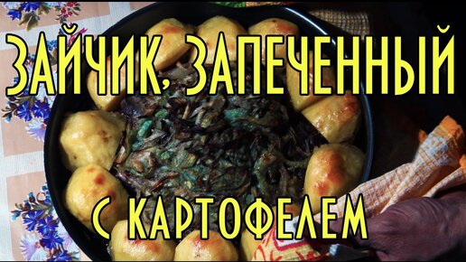 Заяц, запеченный в луке, с картофелем. Hare baked in onions and potatoes.